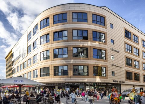 Die Fas­sa­de wur­de zum einen in Anleh­nung an das in unmit­tel­ba­rer Nähe befind­li­che Bau­denk­mal, die „Zita­del­le“, ange­gli­chen. Zum ande­ren stammt die Zie­gel­fas­sa­de aus regio­na­lem Zie­gel­brand, wel­cher die ruhi­ge und zurückhaltende Art des ehe­ma­li­gen Fried­hofs­ge­län­des wider­spie­gelt und zugleich dem nach­hal­ti­gen Gebäu­de­kon­zept entspricht.